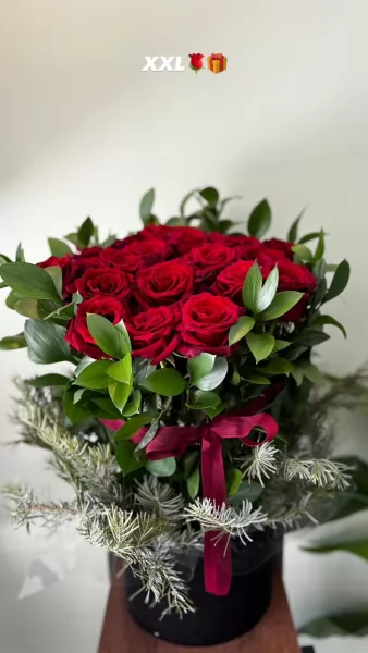 Saten Büyük Kutuda 33 Adet Kırmızı Gül Yeşillik Süslemeli Stok Durumuna Göre Yeşillik ve Kutu Farklılık Gösterebilir.